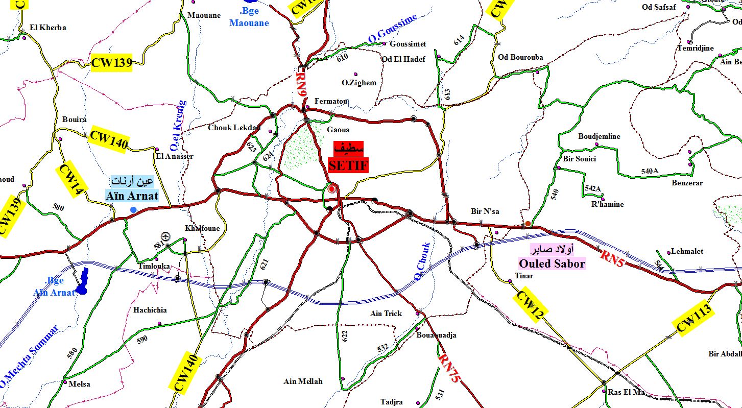 خريطة شبكة الطرق لولاية سطيف